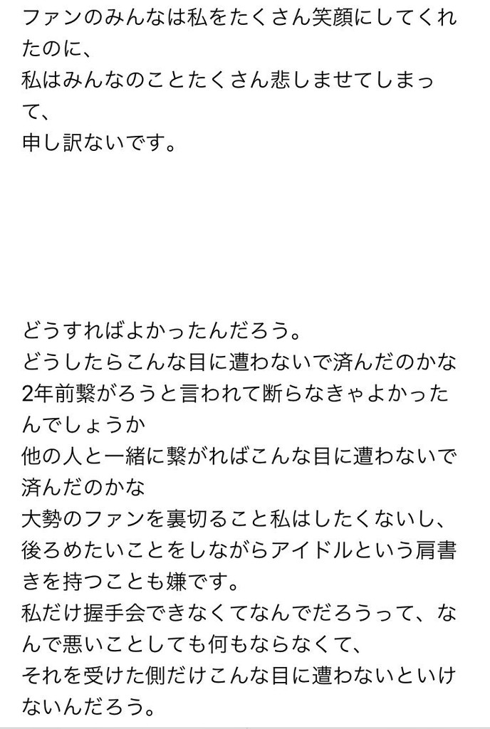 「山口が謝らないのであれば、同じチームのメンバーに生誕祭の手紙のように代読という形で山口の謝罪のコメントを読ませて謝らせる」と言われました。