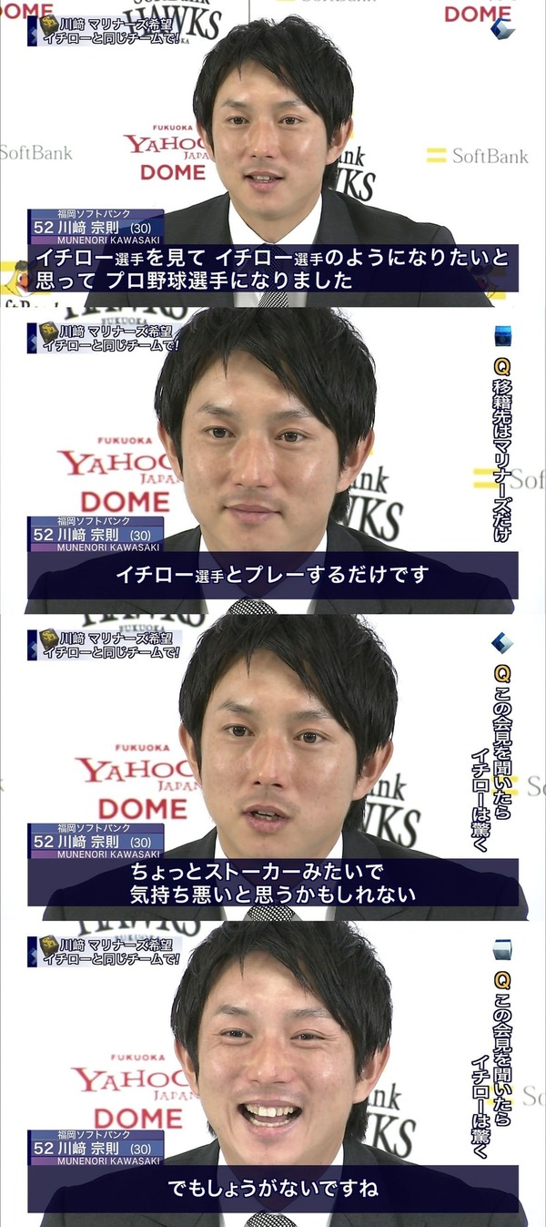 「はじめまして、イチローさん、ソフトバンクの川崎です。よろしくお願いします」