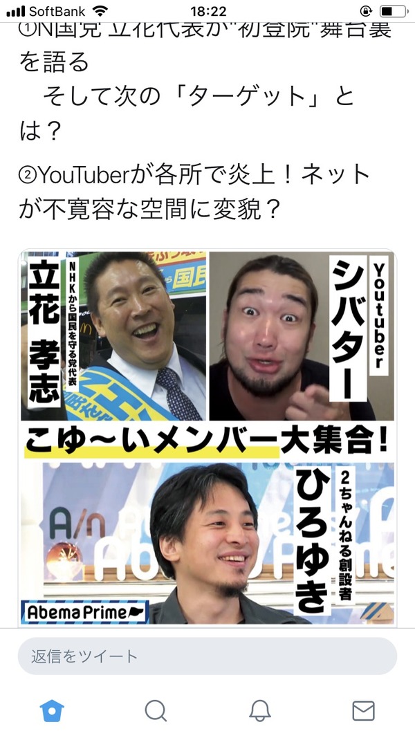 【朗報】AbemaTV、シバター・ひろゆき・立花代表を同時召喚