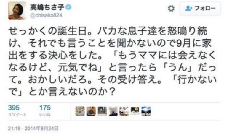 こんな家庭の危機に立ち上がったのが息子。「もうママ、帰ってきてよ。パパに謝って」と高嶋に言ってきたという。