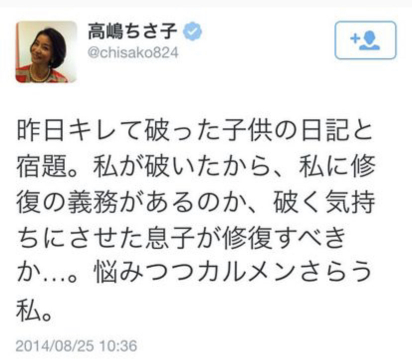 夫の謝罪が当然と考えていた高嶋は「何で?」と息子に尋ねると、息子は「何をやったとしても、何があったとしても、すべてママが悪いと思う」とバッサリ。
