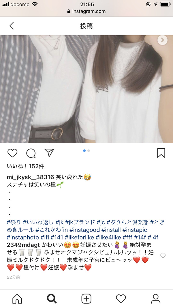 インスタの公開コメントでjcに「絶対見つけ出して妊娠させる!」って送りまくってるんやが