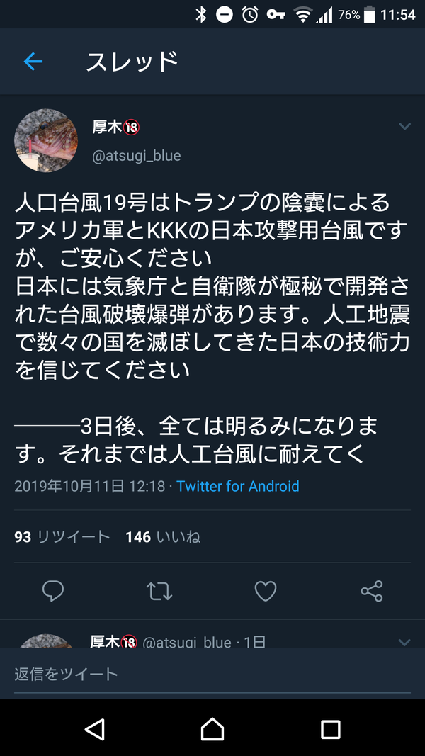 ツイッターで人口台風調べても本気で信じてる人しか出てこなくて草生える