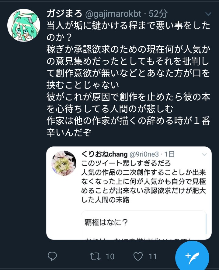 ゴロのうえに攻撃されたら鍵垢メンヘラとかキモすぎやろ
