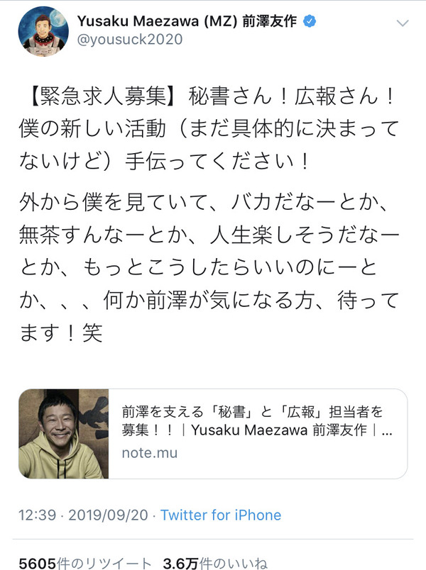 〈同席させていただいたX(仮名、前澤氏のアシスタント)からその合否に関わるような軽率な発言があったことは本人に代わりまして心よりお詫びします。