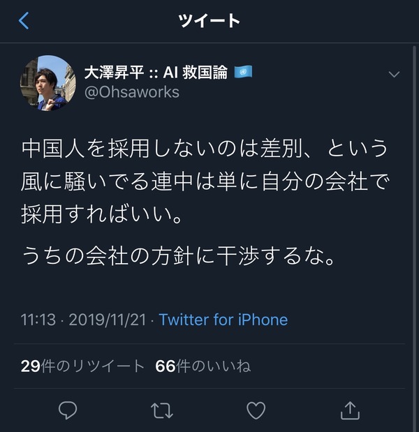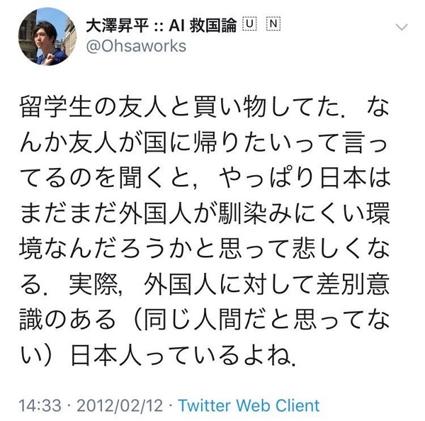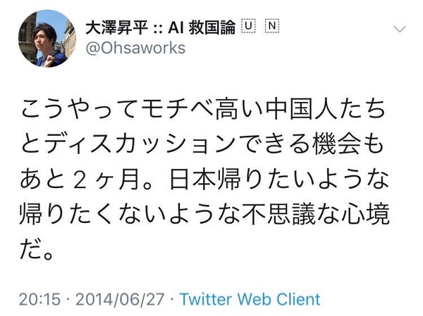 中国人は採用しない発言の東大准教授の7年前のツイートがこちら。 何が彼を変えてしまったのか?
