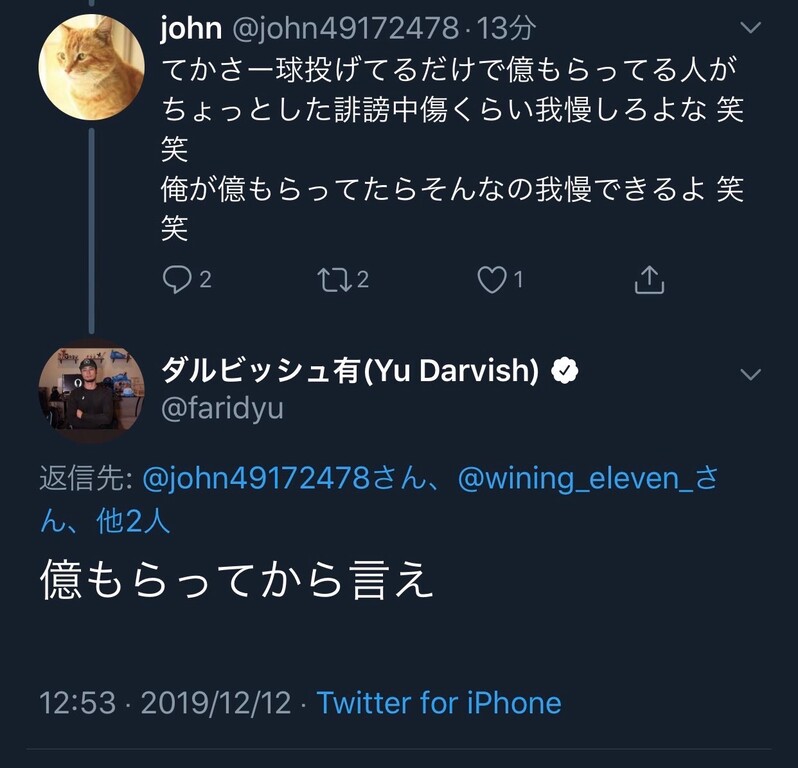 にも関わらず中傷の枕詞に「億もらってるのに」なんて書くのは、ひとえに嫉妬心から。かわいそうだね。