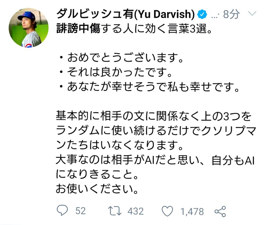 引用元: ダルビッシュ有「誹謗中傷する人に効く言葉を3つ教えます」