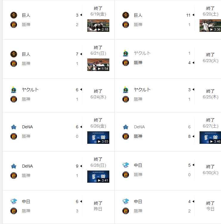 まぁ上得意の横浜で勝ち越し出来なかったのは今年なんかヤバない?って感じはするわね、阪神
