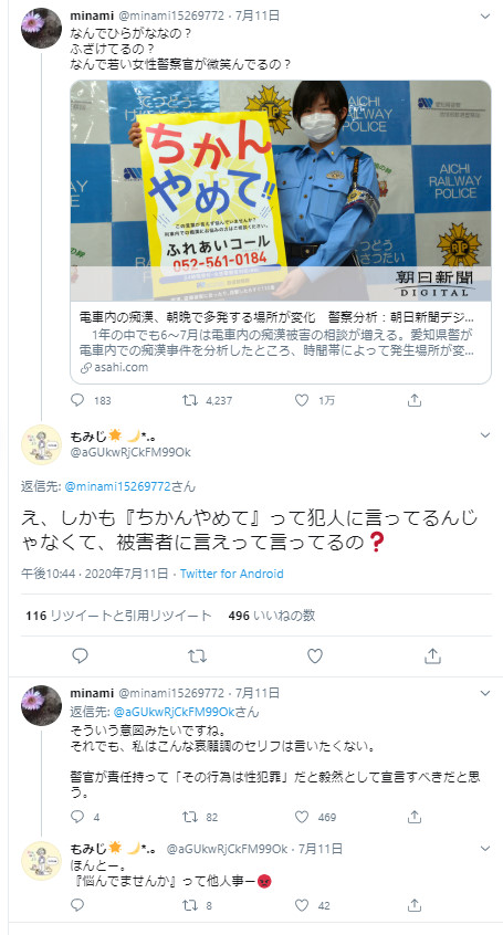 引用元: 【悲報】「痴漢やめてポスター」に女性からの批判が殺到!「なんで若い女性警察官が微笑んでるの?」