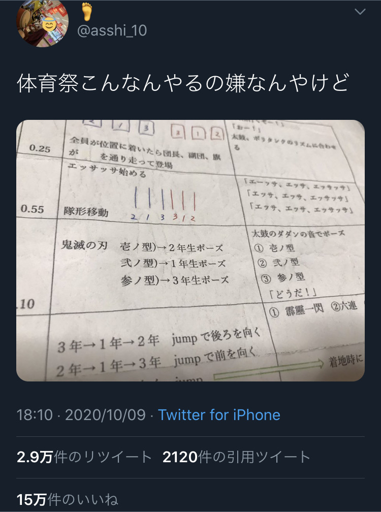 引用元: 【悲報】中学生「助けて!このままじゃ体育祭で鬼滅ダンスさせられるの!」