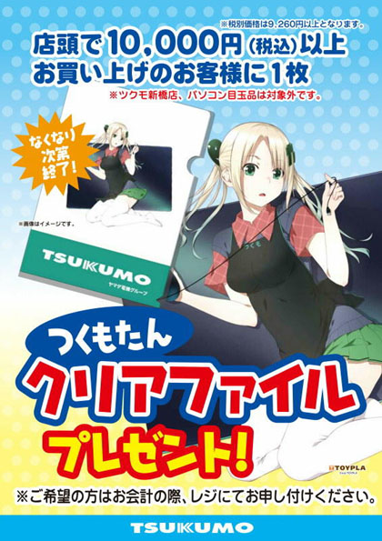 TSUKUMOの人気キャラクター「つくもたん」が遂に“卒業”(契約終了)するようです。TSUKUMOのお知らせページに告知が出ています。同社によると、終了の理由は「株式会社トイズ・プランニング様とのマネージメント契約終了のため」とのこと。
