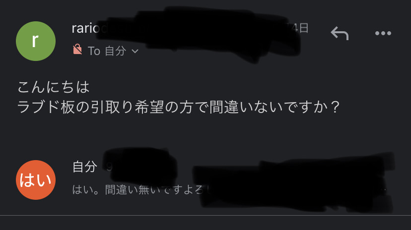 ラブド板で思ってたんと違うから買って1週間だけど着払いで引き取ってくれってレス見て貰った