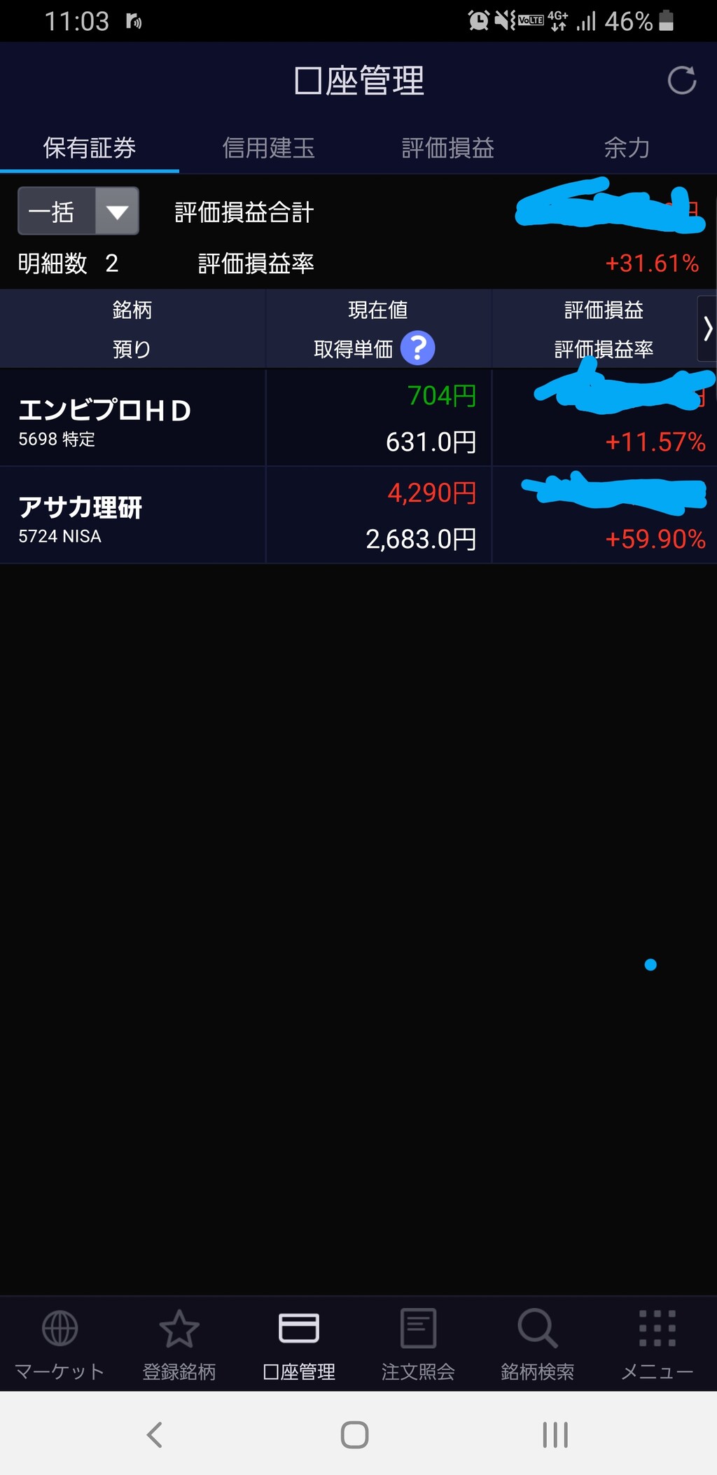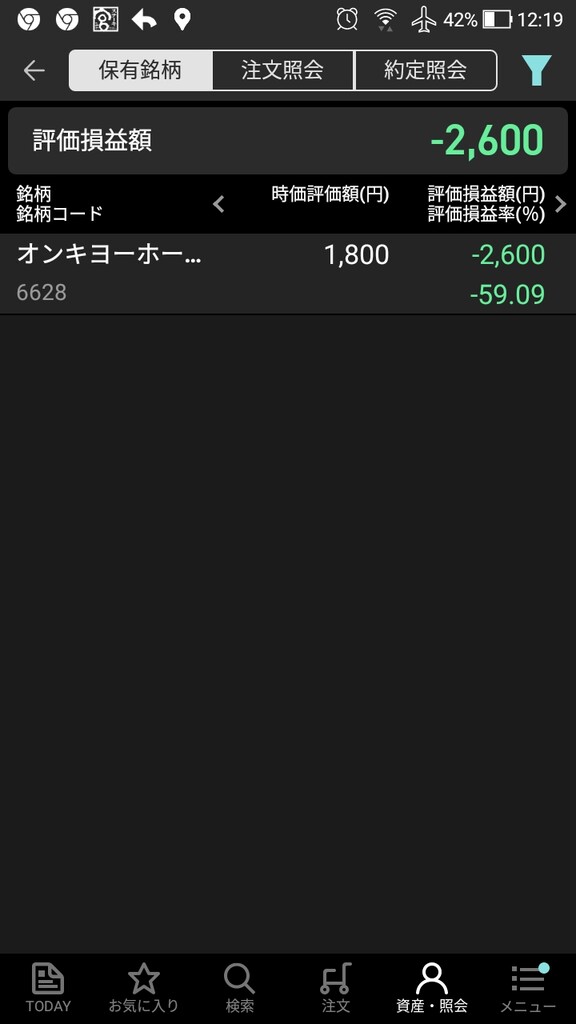 例外的に松井証券だけはアプリの背景が白なんで普通の簿記と同じように利益は黒字、損失は赤字で表示するようになってる