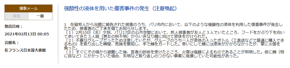 引用元: おフランス「お前日本人だろ、死ね」塩酸を顔にかけられる😰なぜ世界中で嫌われるの?