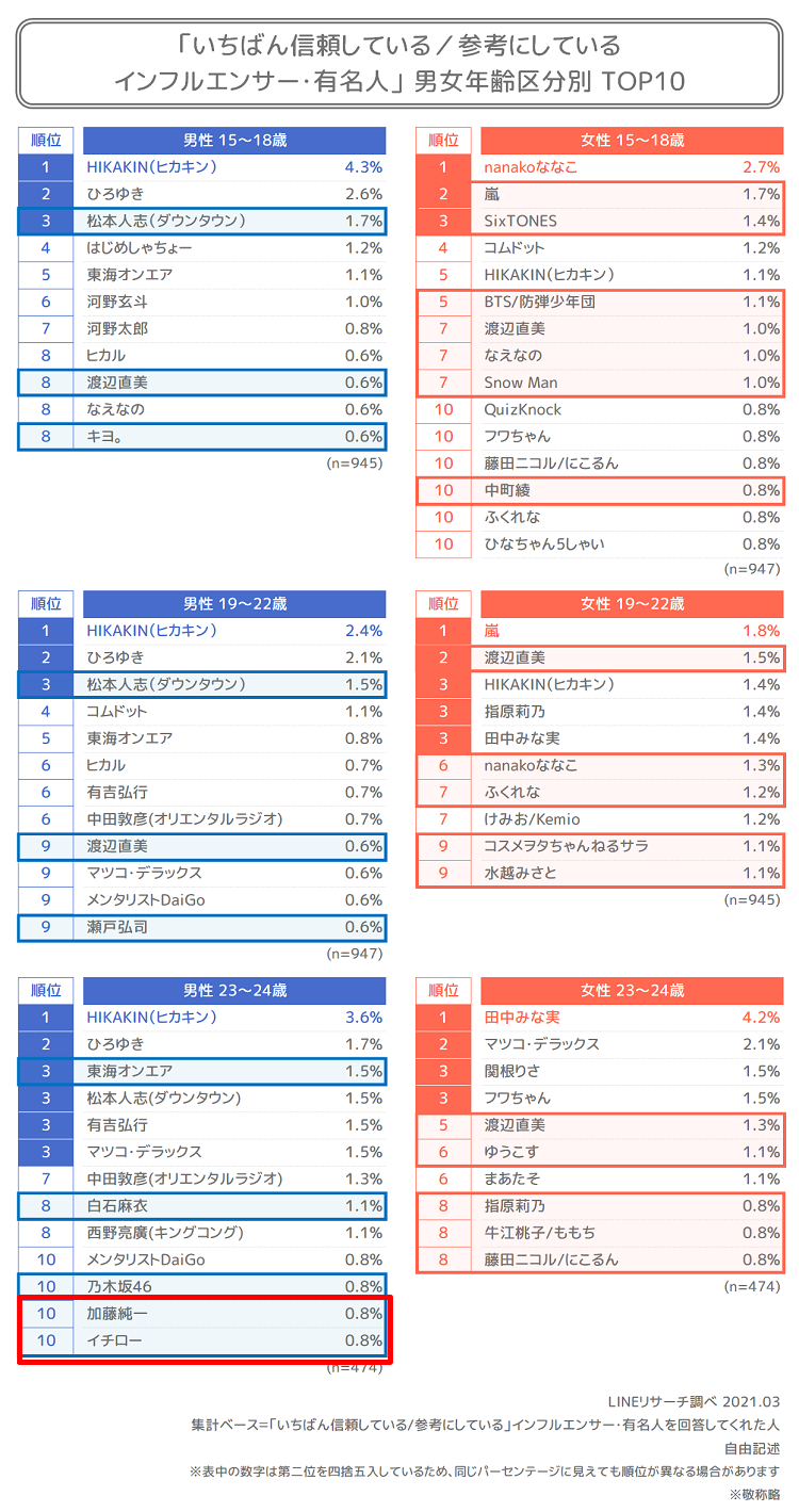 いちばん信頼している/参考にしているインフルエンサー・有名人