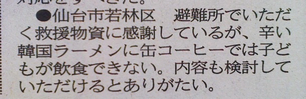 震災で物流止まってほんとに食べるものがない、今日ごはんどうしようって時にこれだからなw