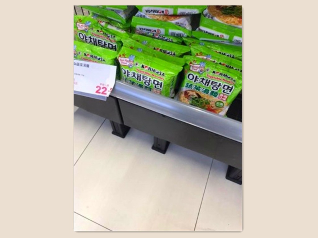 台湾のSNS上であるユーザーが投稿した内容によると、同ユーザーがスーパーで買い物をしていた時、インスタント麺の棚はほとんど売り切れて空の状態になっていたものの、セール品だった緑のパッケージの袋麺だけは大量に売れ残り「誰も手を付けない状態」だったという。