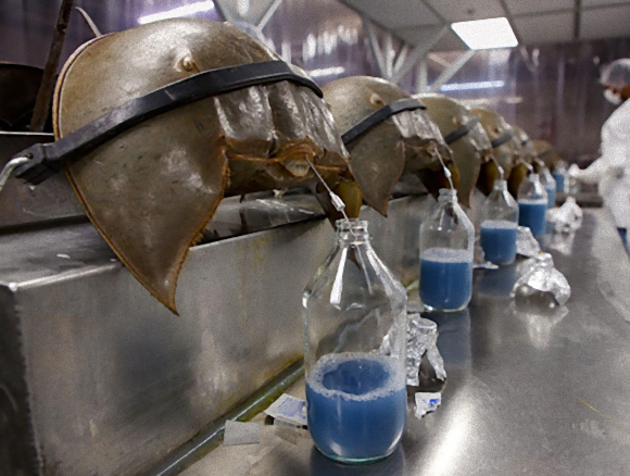 画像は成分(通称青い血)を抽出されているところ