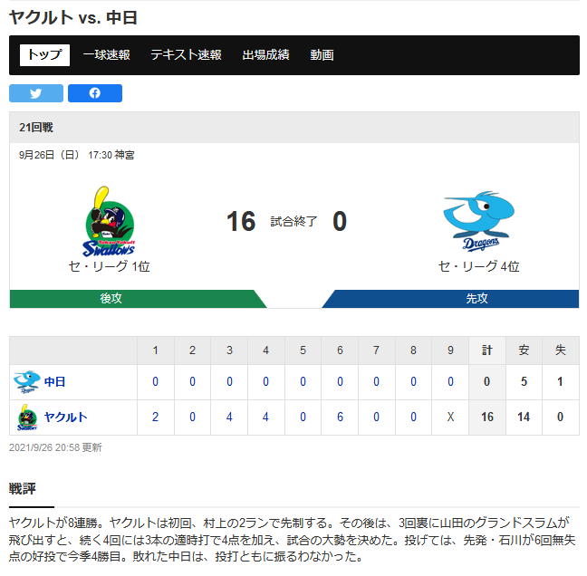 敵地神宮で首位ヤクルト相手に0-0ドローの何がいかんのですか