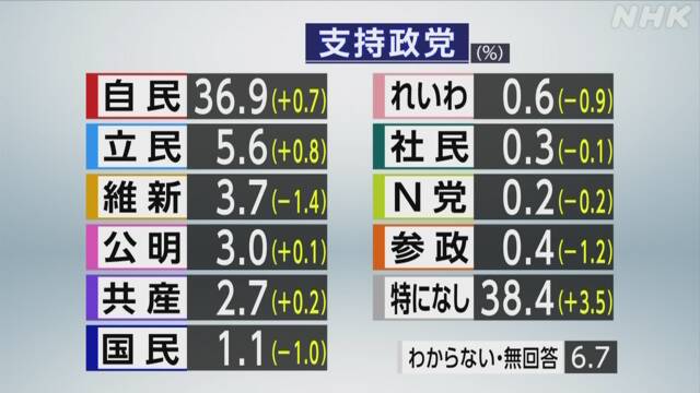 内閣を支持する理由(複数回答)は、「他に適当な人がいない」11.5%、「首相を信頼する」6.0%、「首相の属する党を支持している」5.1%の順だった。