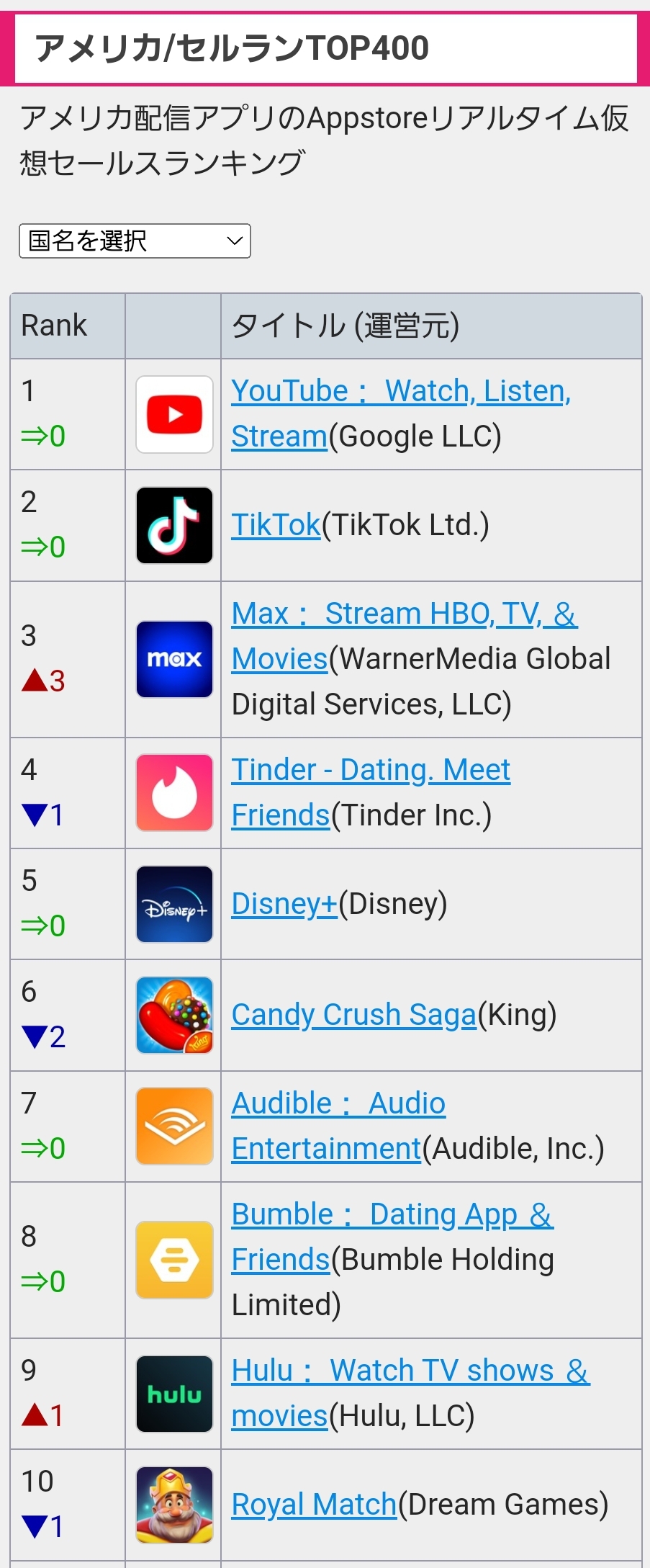 そこのランキングに入ってるゲームだとYou Tubeぐらいしか