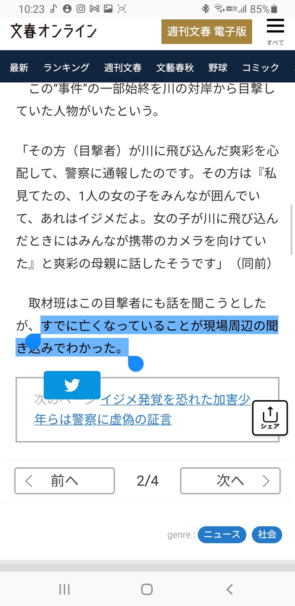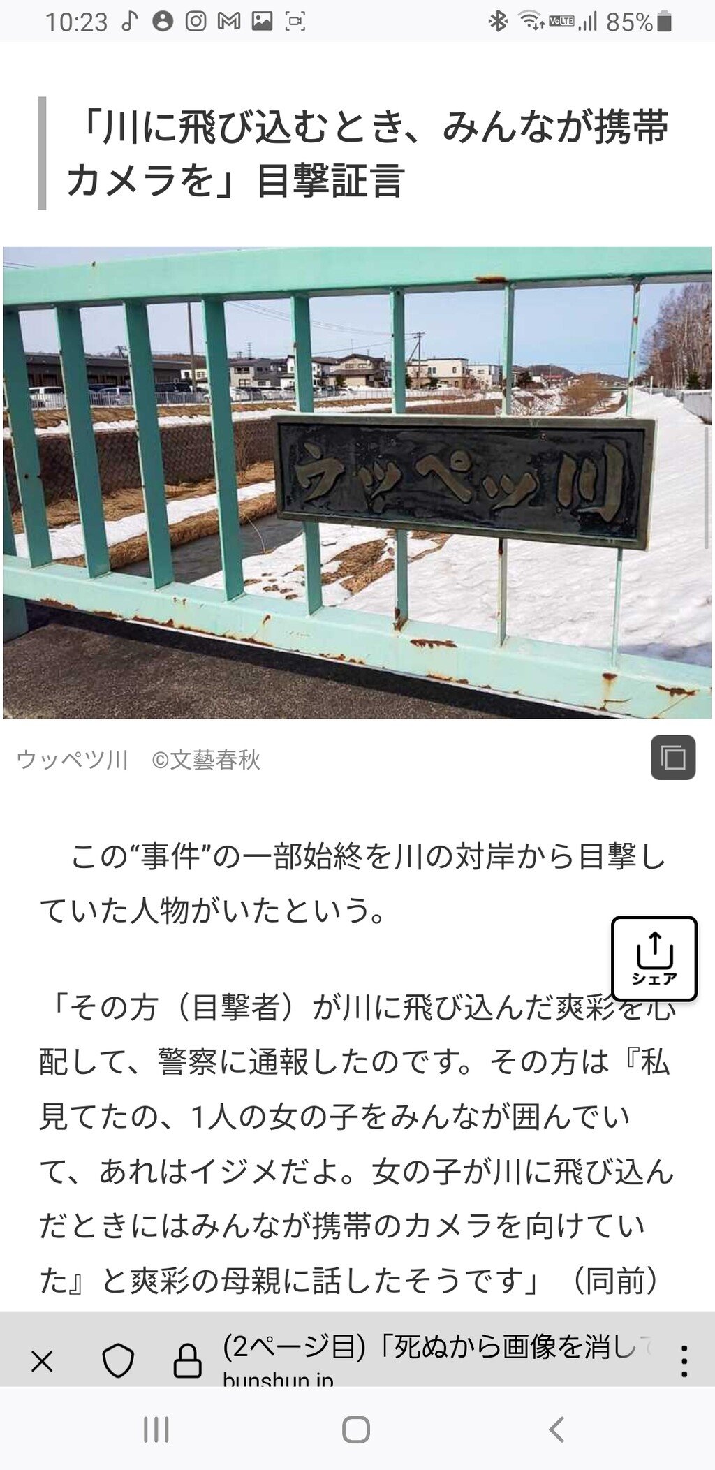 旭川の女子中学生Sさんが集団に囲まれ川に飛びこまされた現場の40代目撃者