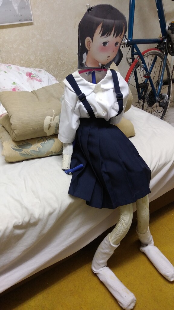 手足がダイソーのねじり棒やエアコン断熱材で出来ている小学生女児風の顔を持った