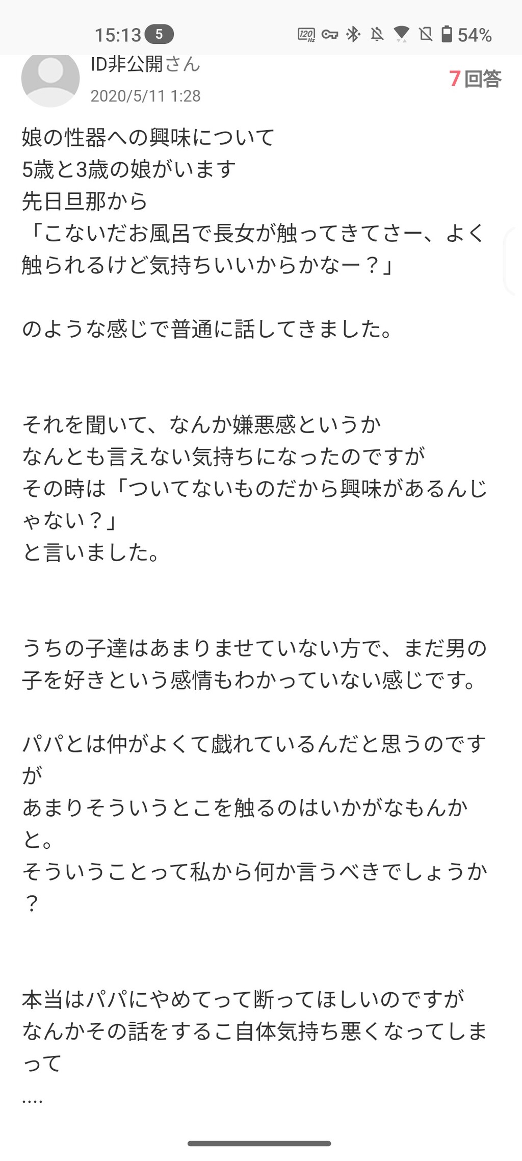 引用元: 👩母親さん「娘がお風呂で夫の性器をベタベタ触っているようで、困っています……」 [487816701]