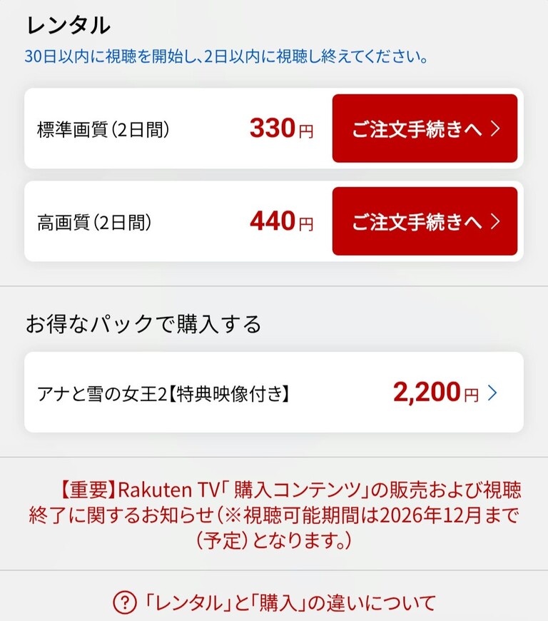 楽天グループの動画配信サービス「Rakuten TV」は、2025年12月25日をもって「購入コンテンツ」の販売を終了すると発表した。レンタルや定額見放題、ライブ配信は引き続き利用可能となる。