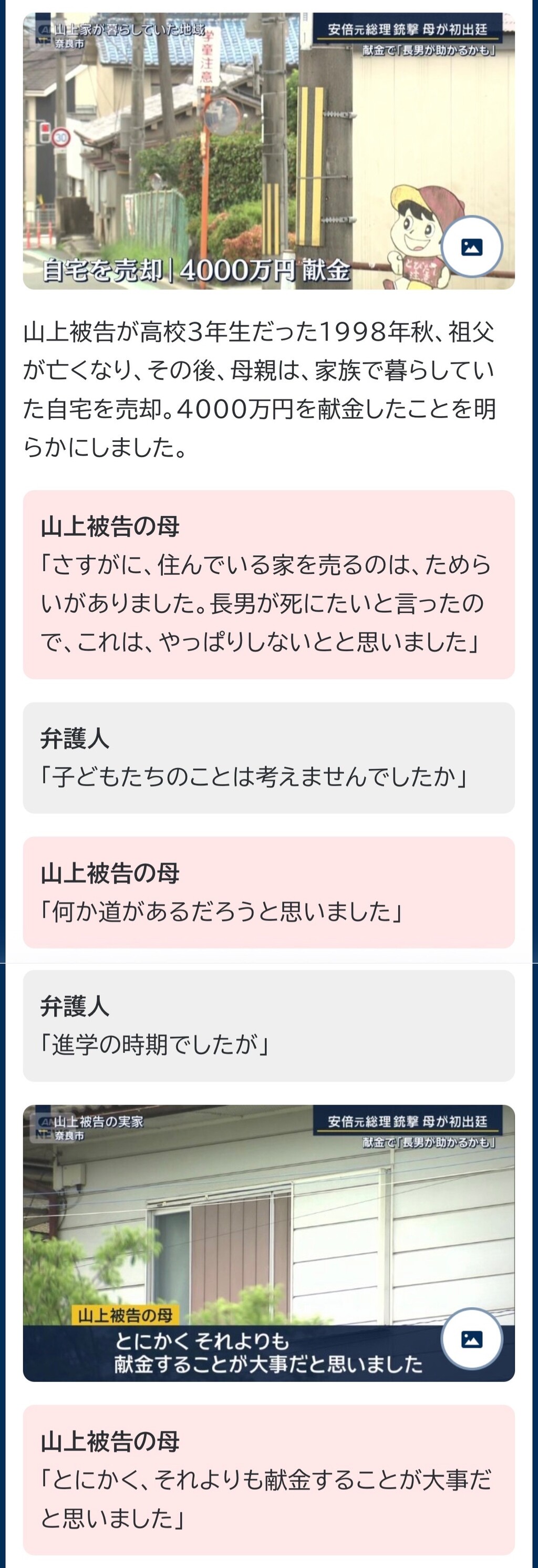 引用元: 山上徹也の母「長男が『死にたい』と言ったので、やっぱり家を売って献金しないとと思いました」