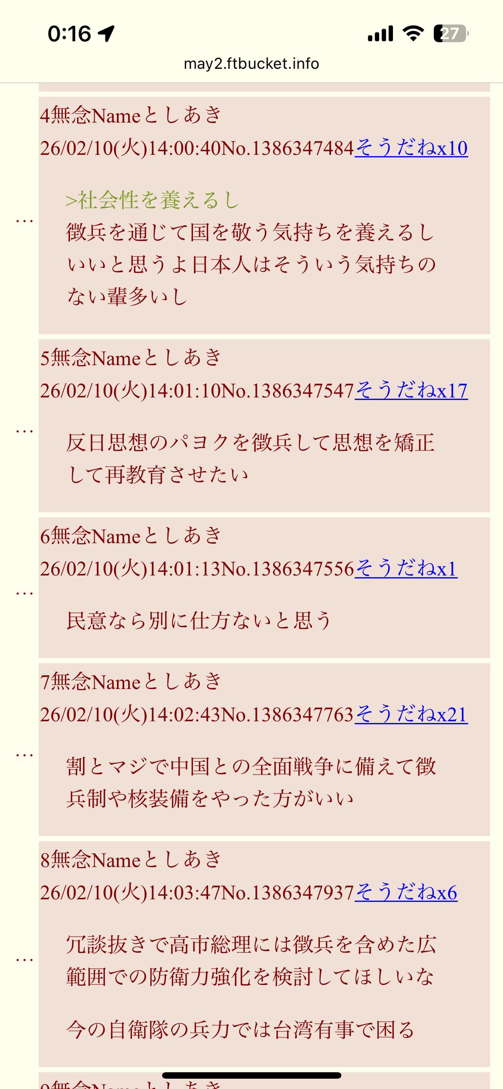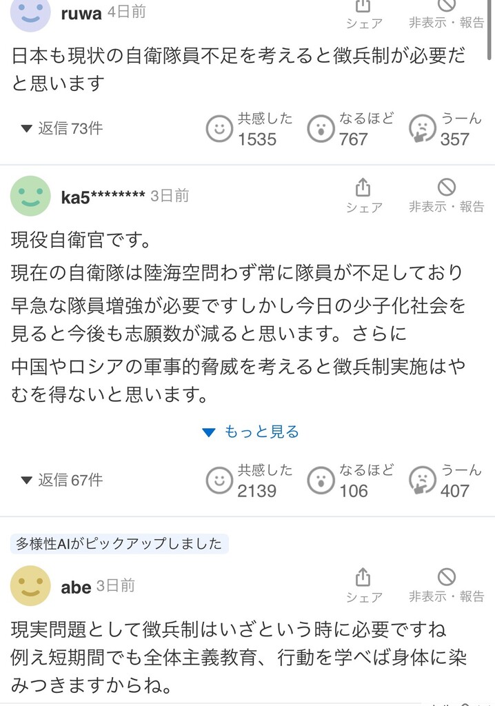 引用元: 日本の世論、いよいよ徴兵賛成に動き始めるwwwwwwwwwww