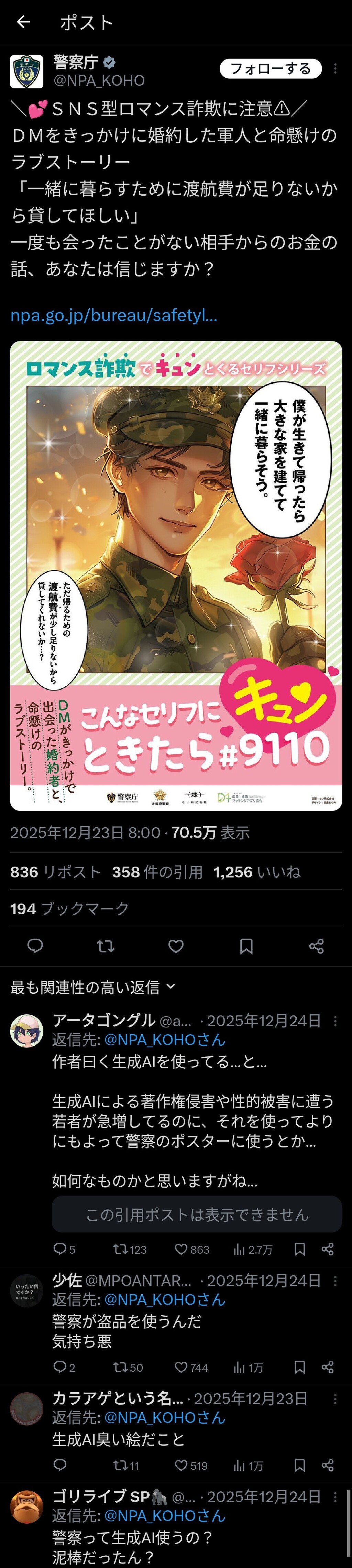 引用元: 警察庁さん、生成AIがバレて非難されてしまうwww