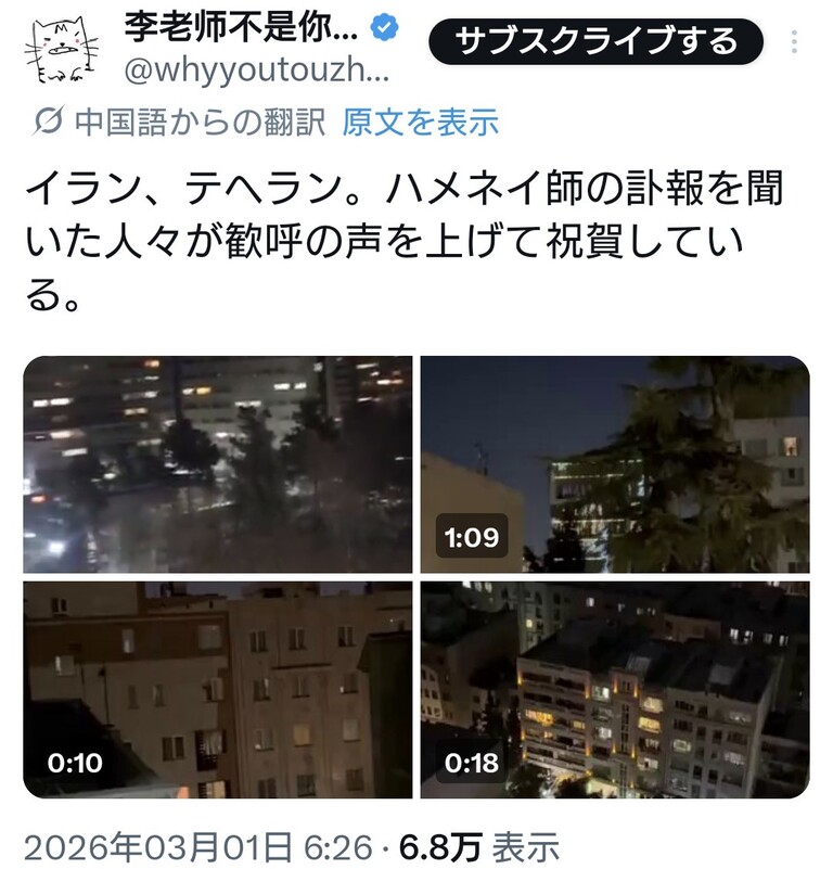 引用元: ハメネイ師の死亡を知ったイラン国民が歓喜の声を上げる [662593167]