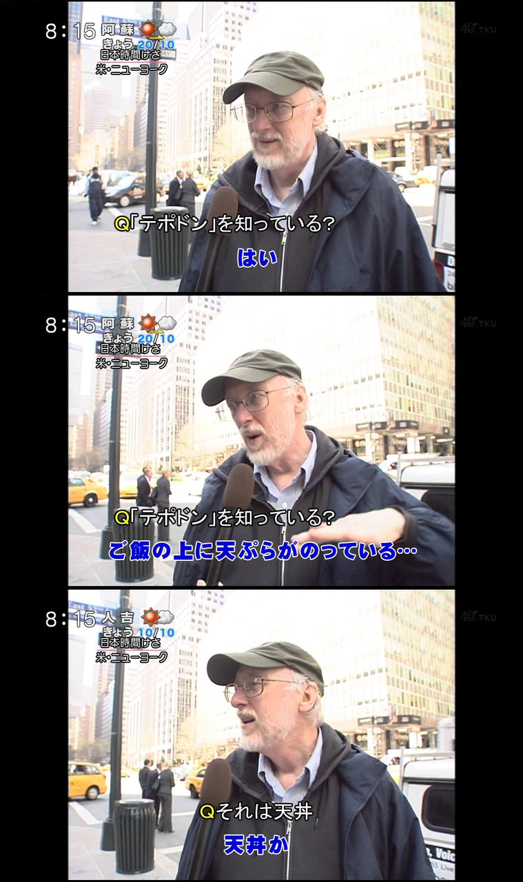 ・ああ、ここ一週間前に行った。テンプラが食える場所だ。