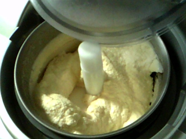 パン焼き機にアイスクリーム製造機能がついてる(正確には冷えた部品を入れる)からやってみるかね。