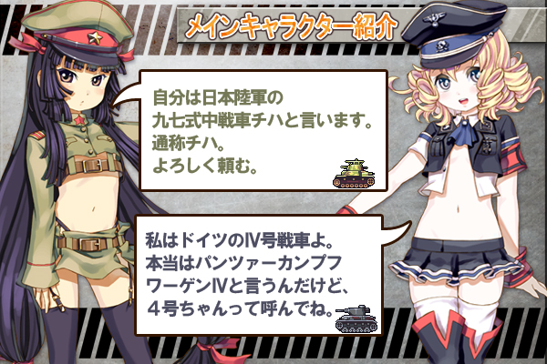 プレイヤーは戦車を擬人化した美少女を集め、それを部隊編成して敵と戦います。擬人化の元