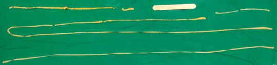 >寄生虫を除去する過程で切れたため、実際にはもっと長いと考えられる。
