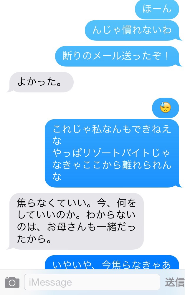 さっさとリゾートバイト探して離れなきゃ(使命感)
