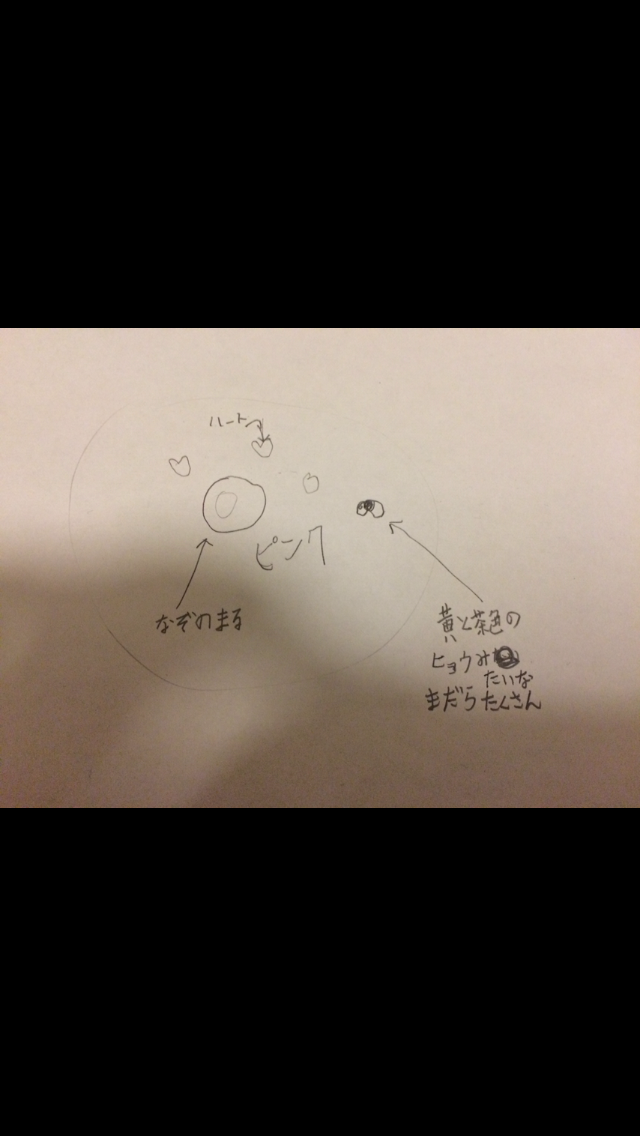 ちゃんとした濃いピンクと青緑のハート、そしてなぞのまる
