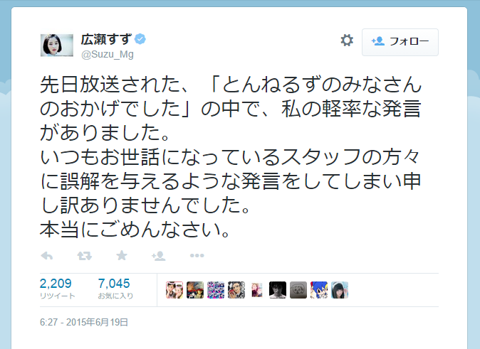 そんなバカとものために謝った広瀬は「軽率」かも