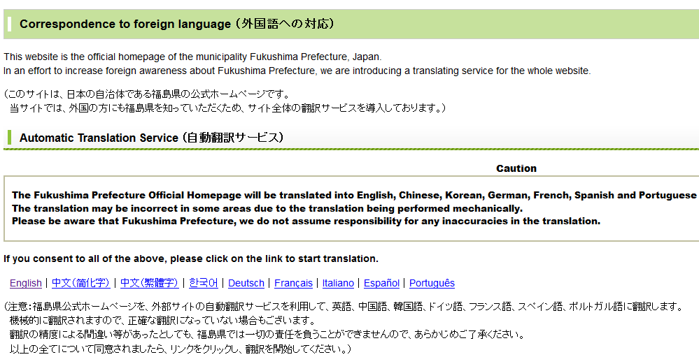 In an effort to increase foreign awareness about Fukushima Prefecture, we are introducing a translating service for the whole website.