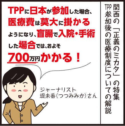 日本人は自ら健康保険の制度を強化したんだから TPP なんか関係ないと思うけど ?