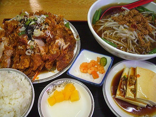 同じ値段の唐揚げ定食で、唐揚げが3倍、ご飯おかわり自由、ラーメン、サラダ、酢の物がついてくるお店を知ってる。