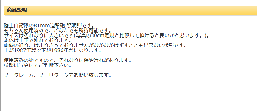 小遣い稼ぎのために迫撃砲弾をネットで売るとかいかんでしょ