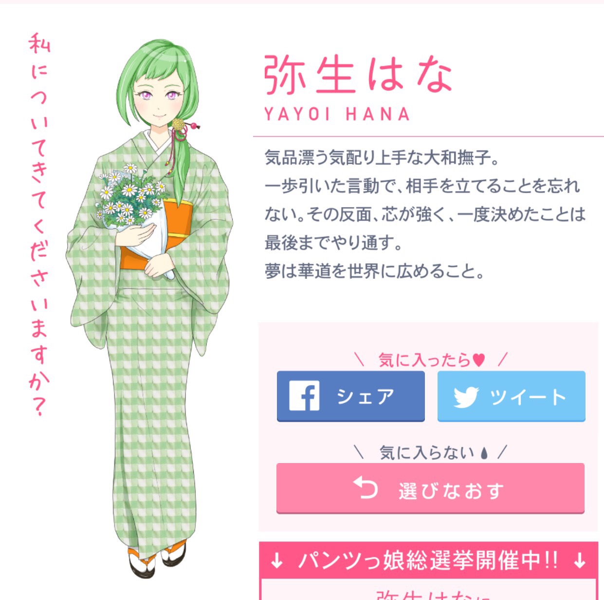 クターに仕上がっており、ワコールウェブストアから商品の購入も可能。総選挙の投票