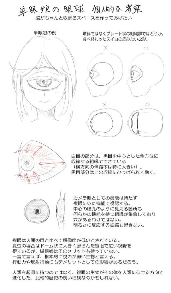 一つ目巨人のサイクロプスみたいに恐ろしさの特徴としてなら単眼は好きだがな