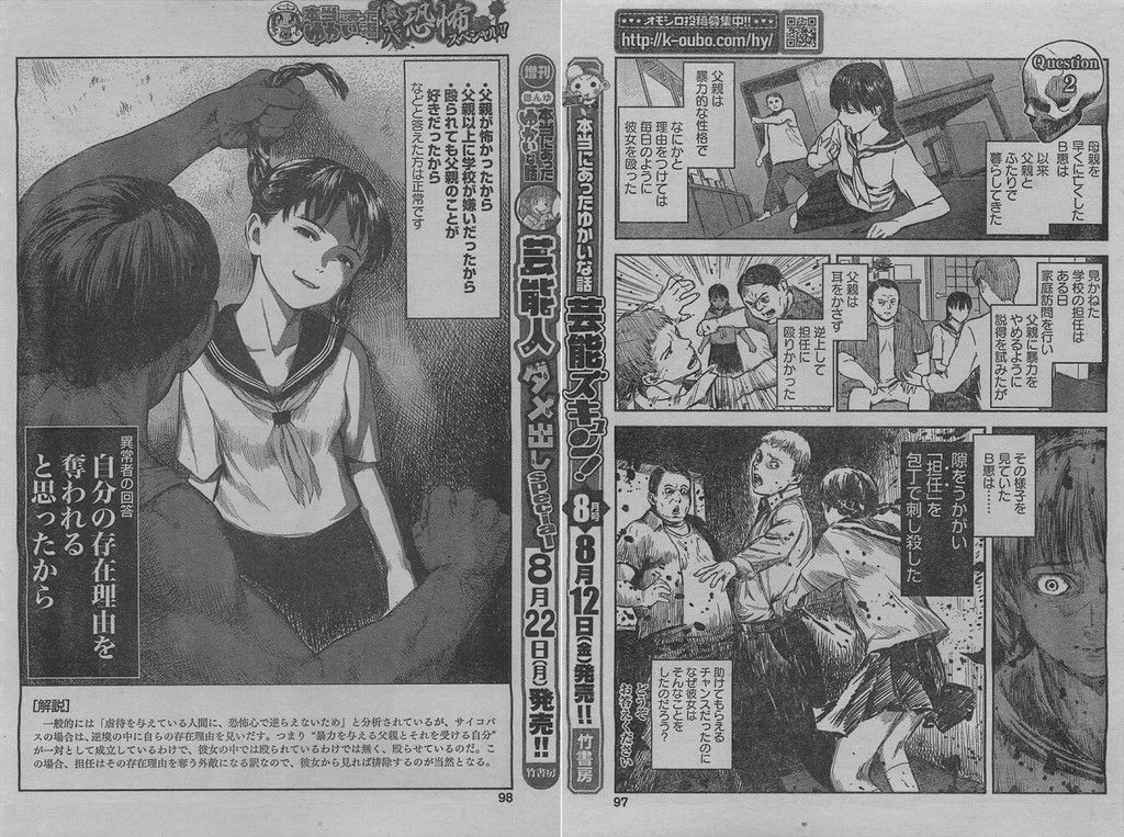 本当にあったゆかいな話しとか言う雑誌で恐怖スペシャルなんてする奴がサイコパスやで