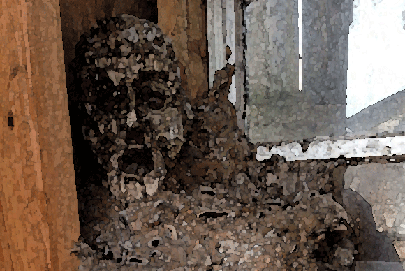スズメバチの巣を駆除するどころか、自宅を駆除されてしまったようで、殺虫剤のスプレーでガスが充満しているところに、