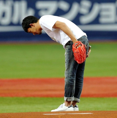 お騒がせして申し訳ありませんでした」と客席に謝罪。「そんな中、始球式をさせていただき